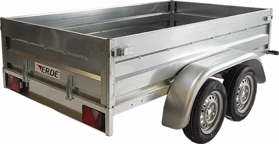 Remorque en acier galvanisé à chaud double essieu, ridelles ouvrantes à l’avant et à l’arrière pour un chargement aisé. Remorque homologuée selon les normes en vigueur.